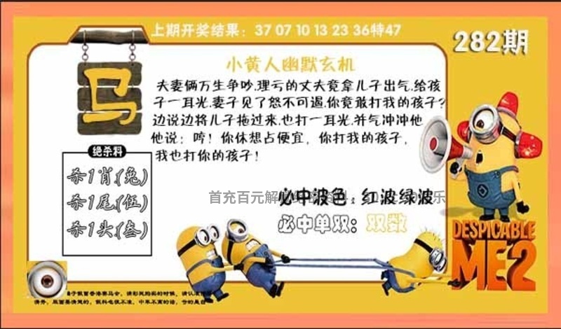 【小黄人幽默】一肖一码发布区《444394.com》 |